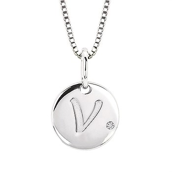 Diva Diamonds® Letter V Pendant In Sterling Silver With .01 Ct. Diamond With 18" Box Chain (Adjustable To 16") And Lobster Claw Clasp Sterling Silver Diamond Initial V Pendant with 16" Chain and 2" Extender